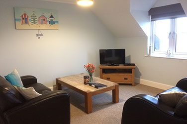 To the left of the Hallway, there is an open plan, carpeted Lounge and Dining Area, accessed via Glazed Double Doors. This living space boasts fantastic sea views and stunning evening sunsets. The main lighting is via a dimmer switch for your individual comfort and there is also one floor lamp. Within this area you will find an LCD 32 inch Freeview TV with built in DVD Player, two Double Leather Sofas, a Granite Topped Oak Coffee Table with up-to-date local information/leaflets and information about the apartment, and a Nest of Tables.